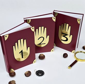 Рука и уголки сделаны из золотистого зеркального пластика.
