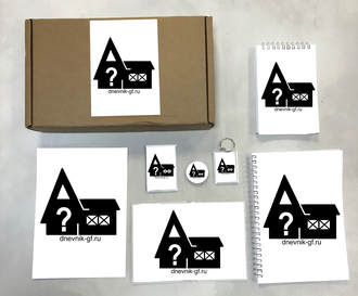 В коробку входят 7 предметов: плакат А4, блокнот А6, тетрадь А5, магнит акриловый, закатной круглый значок, обложка на паспорт, брелок акриловый.