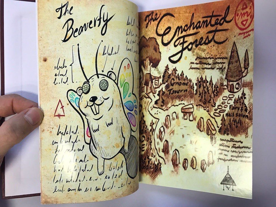 В Дневнике Стэна, Гравити Фолз №1 32 страницы с картинками, текстами, шифрами далее около 50 чистых листов для самостоятельного заполнения рисунками, историями, вашими приключениями.