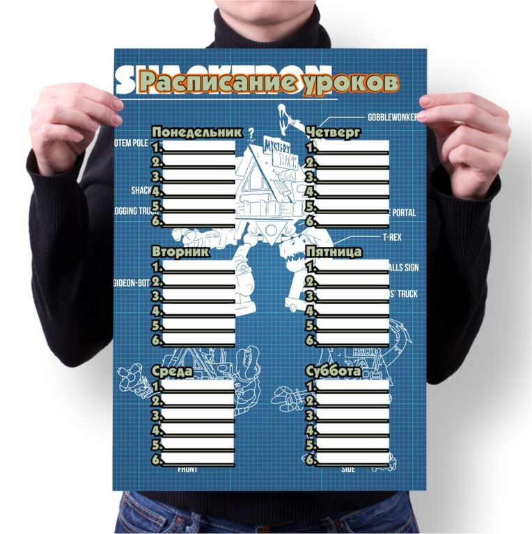 Расписание уроков Mystery Shack №30 172 руб. Выберите размер расписания Выберите параметр Выберите размер расписания А4 А3 А2 А1 В корзину Форматы: А4 (29-21 см) А3 (42-29 см) А2 (60-42 см) А1 (84-60 см) Расписание уроков выполнены на качественной фотобумаге. Форматы: А4 (29-21 см) А3 (42-29 см) А2 (60-42 см) А1 (84-60 см) Расписание уроков выполнены на качественной фотобумаге.