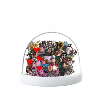 Внутри шара: сердца-блёстки или искусственный снег.